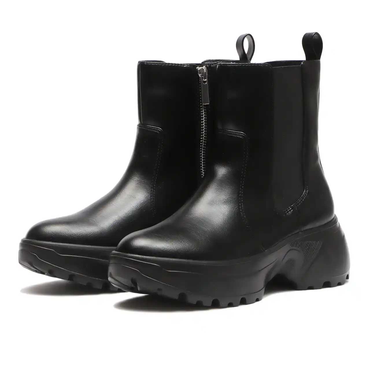 今回展開される2型の「ラク軽ブーツ」では、6.5cmの厚底+1.5cmインヒールでスタイルアップを叶え、スニーカーソールであるため軽やかな履き心地を実現します。また、アッパーには撥水加工が施されており雨や雪の日でも心強い相棒ブーツです。 |