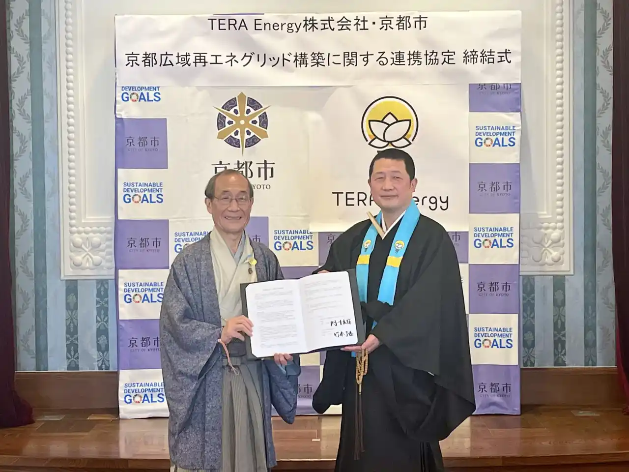 地域住民にとって心の拠り所である神社仏閣等が太陽光発電と蓄電池を備えることで、非常時の電源供給が可能となり、地域防災力の向上にも貢献します。TERA Energy株式会社は京都市と連携協定を結び、この事業を支援しています。 |
