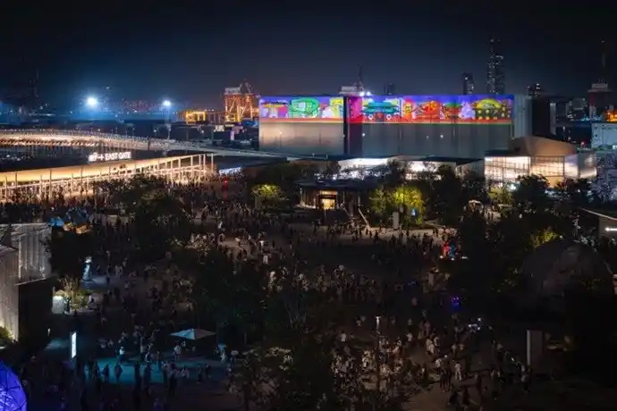 「MEGA CANVAS」は、大阪・関西万博の会場で展開された、大阪府と一般社団法人関西イノベーションセンターの共催によるプロジェクションマッピングです。本学アートサイエンス学科の川坂 翔客員准教授が所属する株式会社ネイキッドとクリエイティブエージェンシーである株式会社カクシンが協働プロデュースを担当しました。本プロジェクトでは、多様なパートナーが「いのちをつなぐ、未来社会の実装」を映像で表現し、万博会場東側に位置する横浜冷凍物流倉庫(ヨコレイ)の壁面(縦10m×横132m)を巨大スクリーンに見立て、日没から21時30分まで映像コンテンツが投影されました。 |