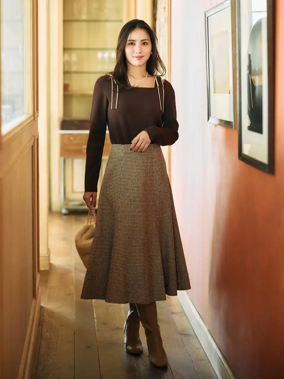 | Coat ¥16,990 Knit ¥5,990 Skirt ¥6,990 Boots ¥9,900 Bag ¥7,990 | |||||||||