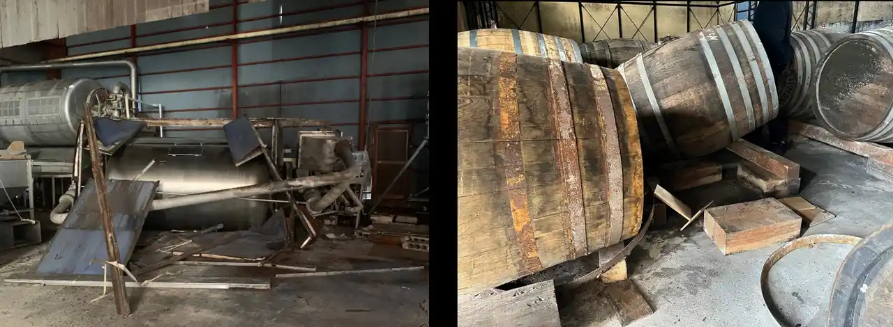 しかし、能登半島地震で震度6強の揺れに襲われ、焼酎を熟成するタンクの多くが傾き、工場内のほとんどの機械が壊れるという大打撃を受けました。製造の再開には新しい機械の入替が必要です。現在は震災前に製造して貯蔵していたタンク100本分の焼酎を販売しながら、再建を目指しています。。 |