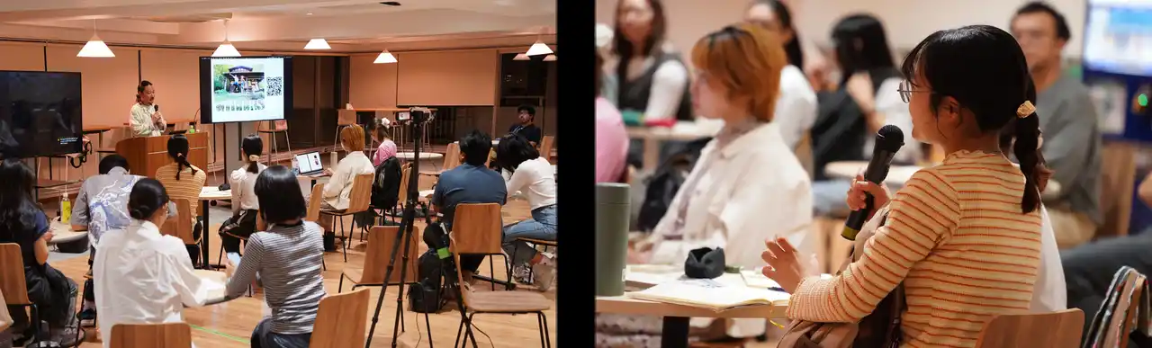 このプロセスは、単なるアップサイクルにとどまらず、文化の継承と社会的な価値創出を両立する「デザインの力」を感じさせるものでした。 講演後には座談会も開催され、石井様にも最後までご参加いただきました。参加者との対話は終始和やかで、貴重な交流の時間となりました。 |
