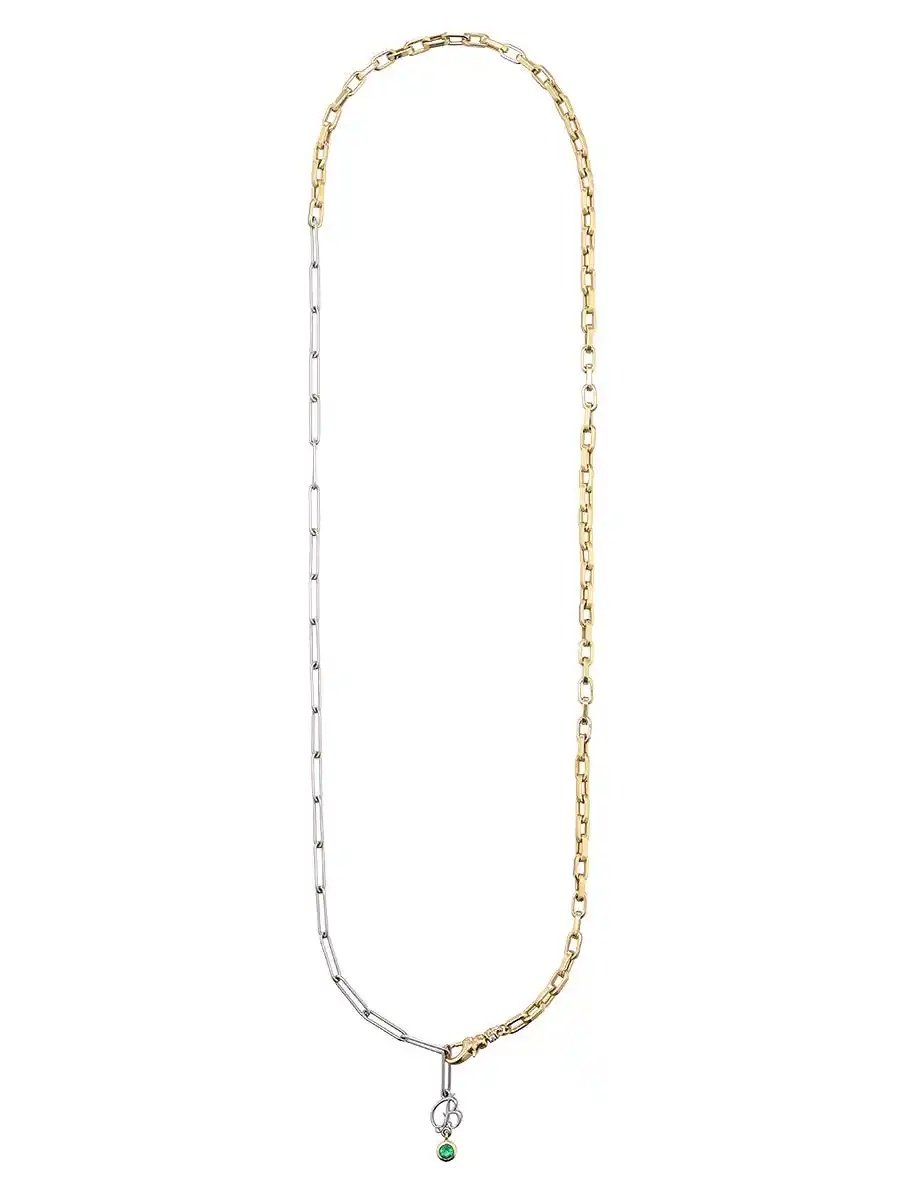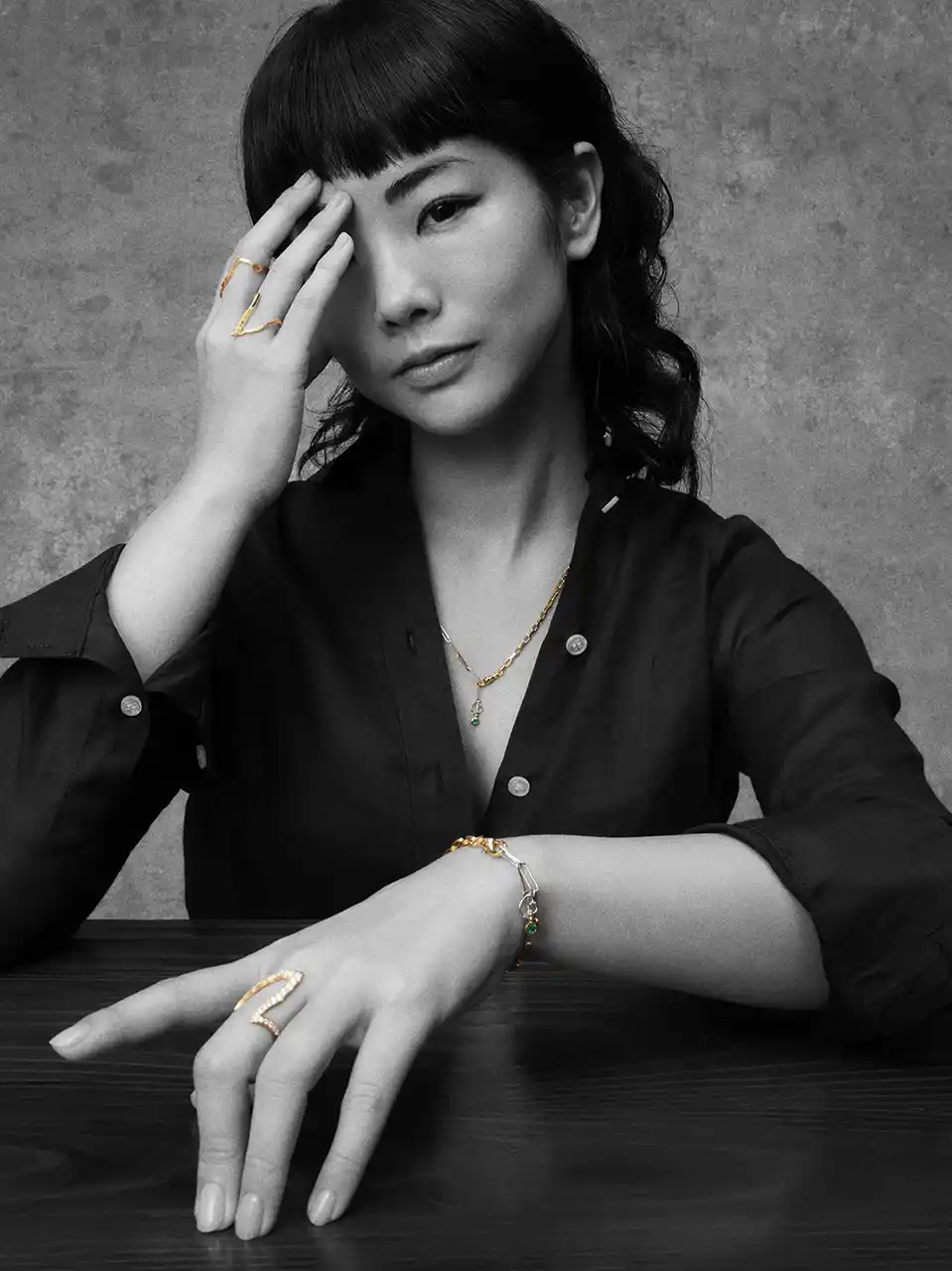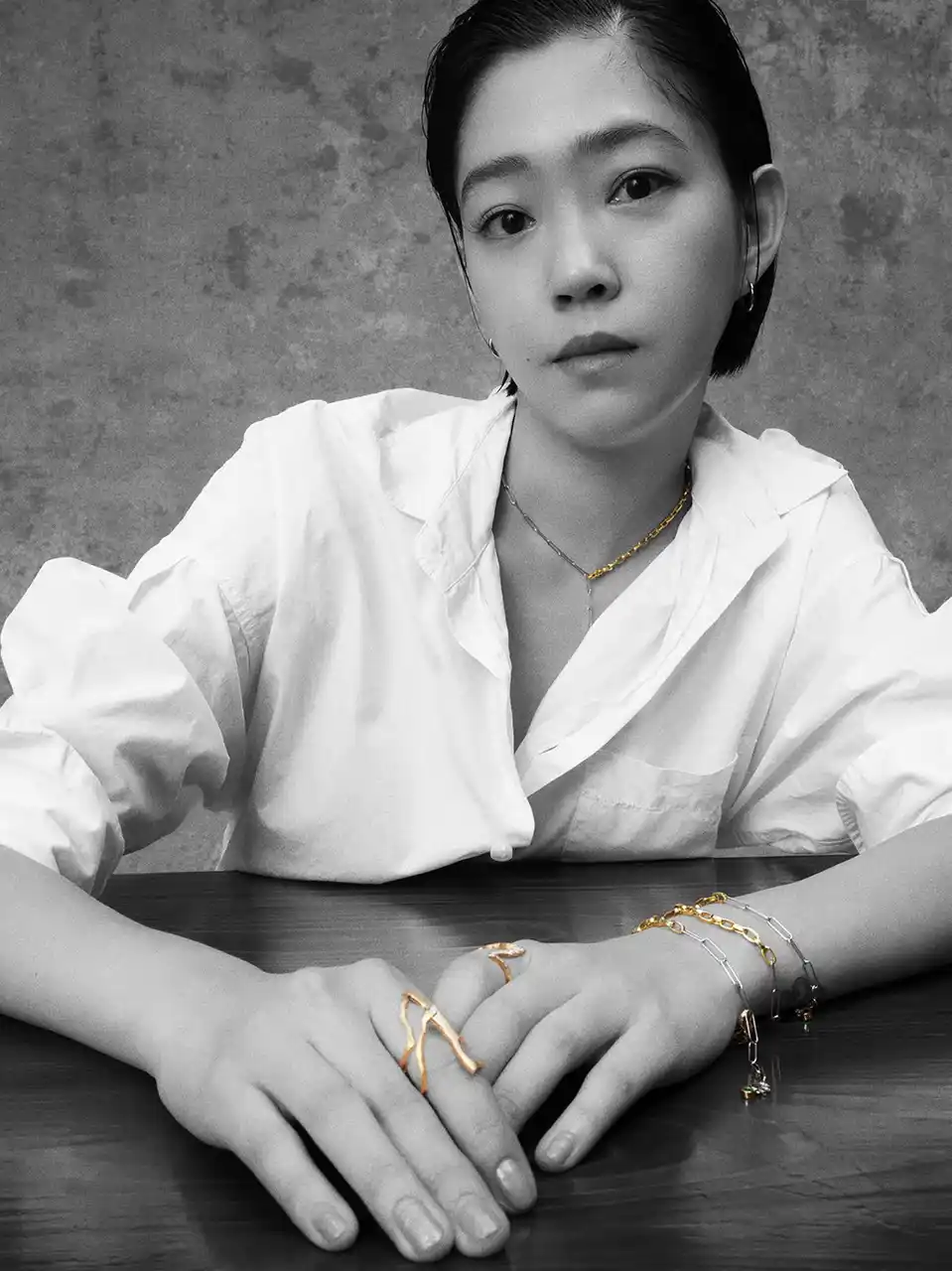 着用者の指がまるで金継ぎされているかのような、躍動感のあるV字ラインが美しい【KINTSUGI】リングは全3型。リングの表面にオリジナルと反転させたマットゴールドを使用し、カジュアル感を演出。素材感を生かしたシンプルなリングだけでなく、V字の先端にマーキスダイヤモンドをあしらったり、パヴェダイヤモンドをVライン沿いに配すなど、華やかでエレガントなデザインも。 K18イエローゴールドとプラチナといった異なる素材のチェーンを繋ぎ合わせた【デュオチェーン】のネックレスとブレスレットには、MADISONBLUEのシグネチャー"Bマーク”と瑞々しいエメラルドをあしらい、印象的な存在感を放ちます。 指輪はひとに見える位置にポイントを置いたデザインが多い中、デザイナーである中山まりこがMILAMOREの魅力に惹かれたのは、ふと自然に目に入る指に寄り添うような【KINTSUGI】のデザインでした。 かねて思い描いていた「いつかエメラルドでジュエリーを作り、デコルテを飾りたい」という想いも甦り、今回のコラボレーションが生まれるきっかけとなりました。 MADISONBLUEのエッセンシャルなシャツに合わせ、かしこまらずカジュアルにファインジュエリーを楽しんでほしい、というメッセージも込められた渾身のカプセルコレクションを、ぜひお楽しみください。 |
