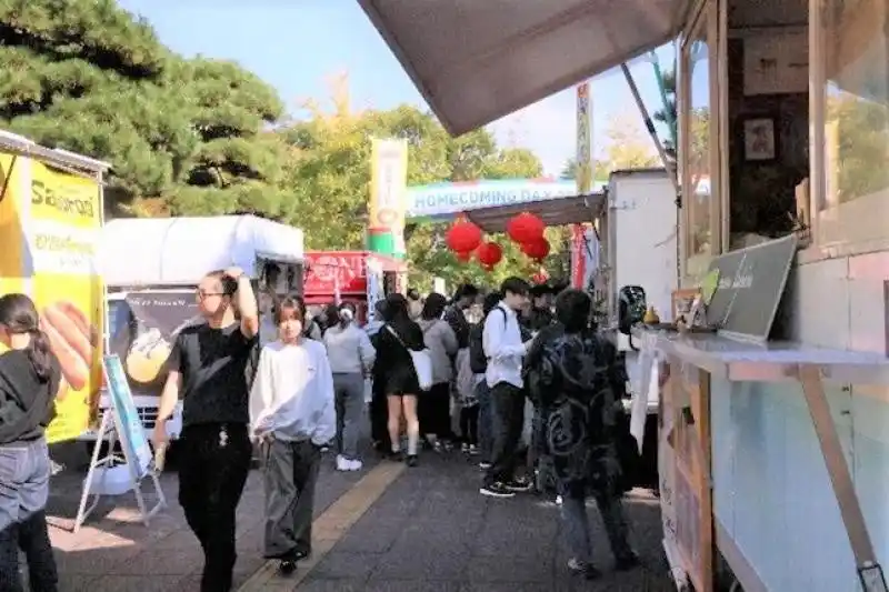 メイン会場周辺では、卒業生や在学生・教職員をはじめ大学にゆかりのある方々による出店や、キッチンカーが並び、在学生による多彩なイベントを開催。各学部等の会場でもさまざまなおもてなしの行事を開催しました。当日は、一時風雨の場面もありましたが、秋晴れの中、多くの方に足を運んでいただき、会場は終始笑顔に包まれていました。 |