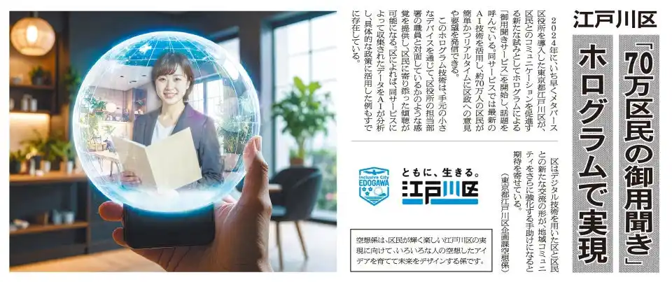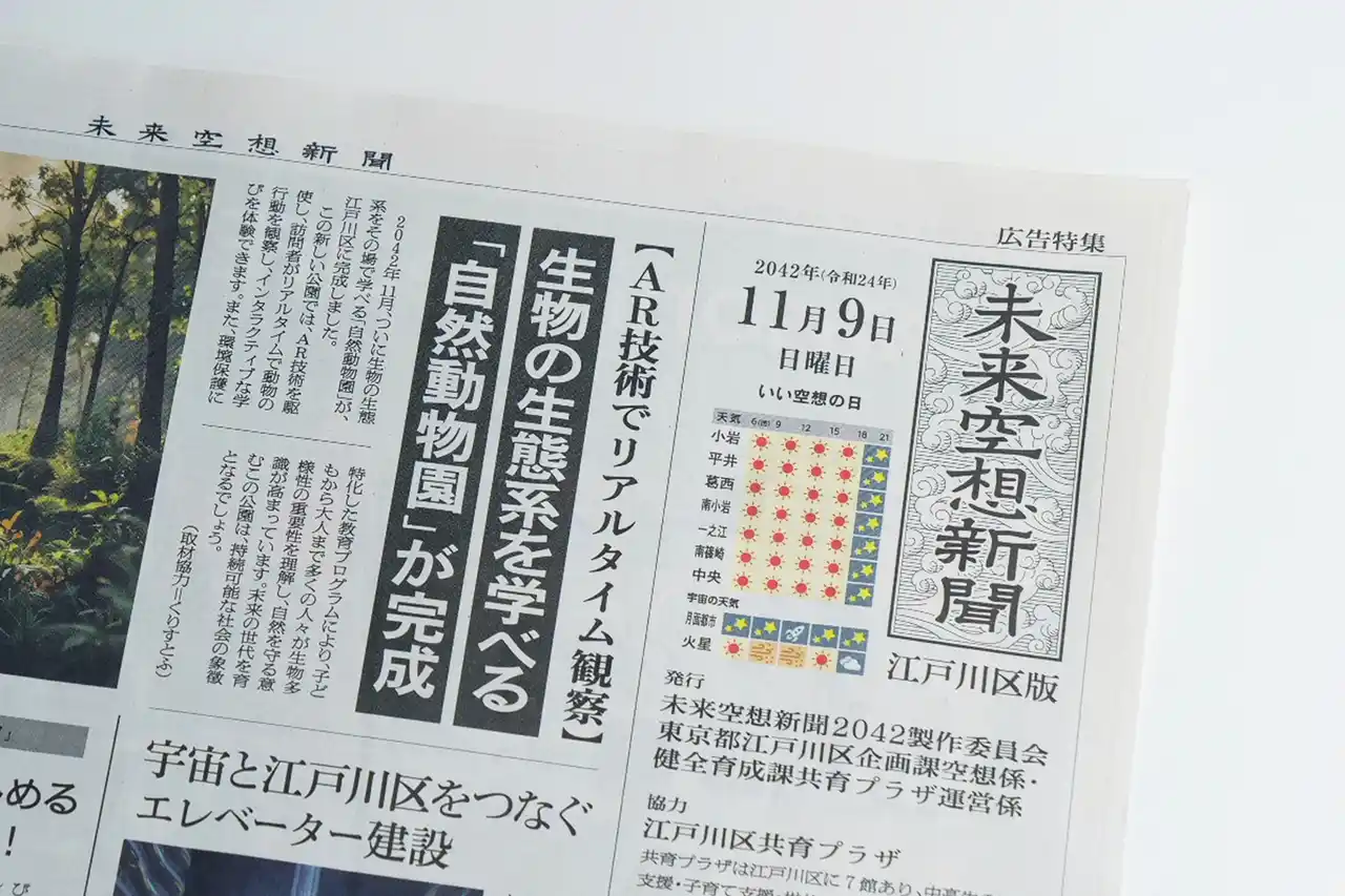 「未来空想新聞2042」第二弾に掲載された江戸川区企画課空想係による空想記事 |