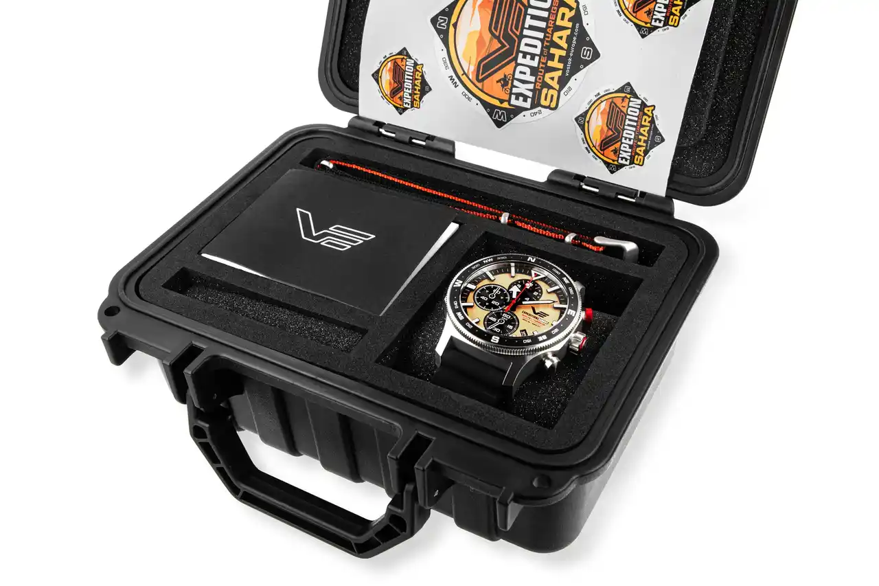 | 世界限定500本!遥か2,500kmに及ぶサハラ砂漠遠征。その過酷な熱と砂塵の中でテストされたこの限定モデルは、極限の環境を生き抜くために設計されたツールウォッチです。MOTOExplorerとコラボ |