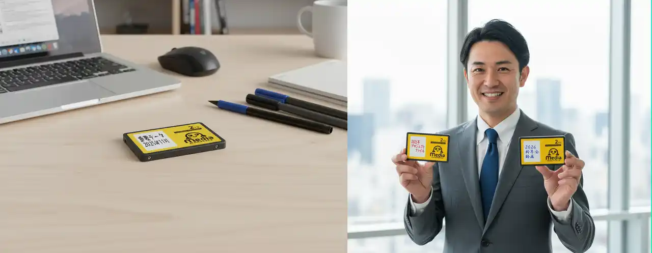 記録するデータ内容などをメモしておけば、パソコンから取り出した後も整理しやすい!ありそうでなかったちょっと嬉しい手書きスペース。 |