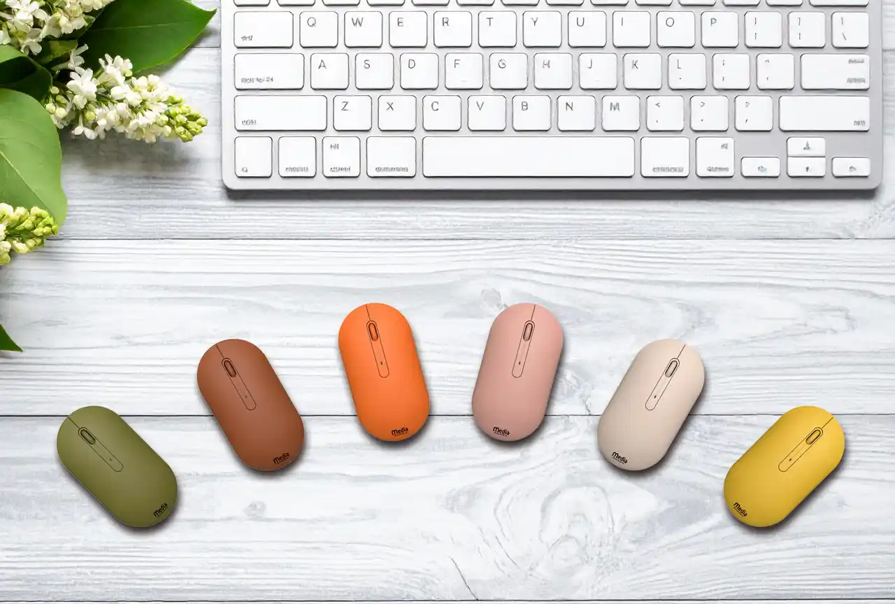 人気のアースカラーを採用した、デスクに彩りを加えるカラフルなマウス(女性社員が開発!) |