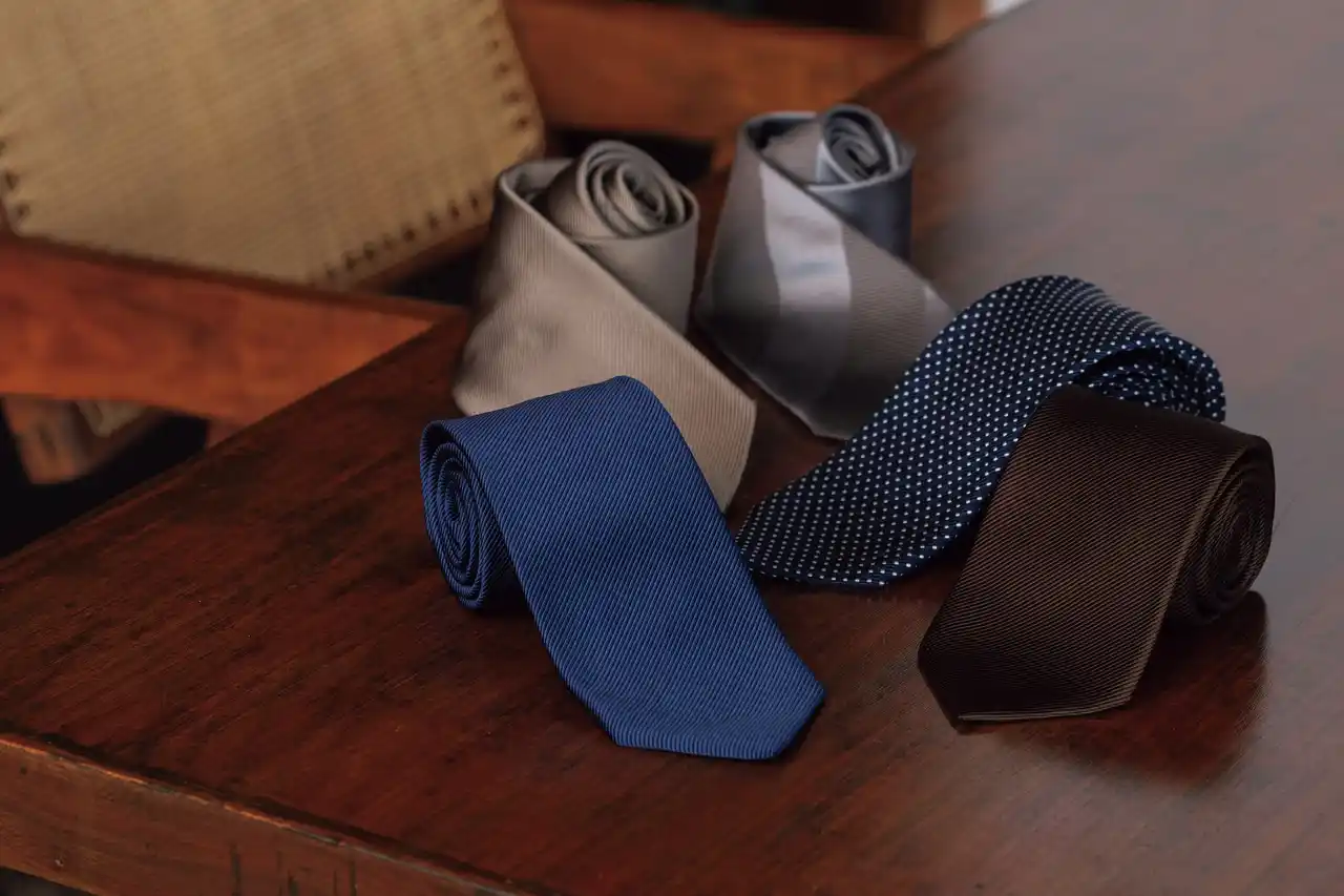 新たに展開した「金のネクタイ」は、老舗ネクタイ織物メーカーが手がける、特別な国産生地を |