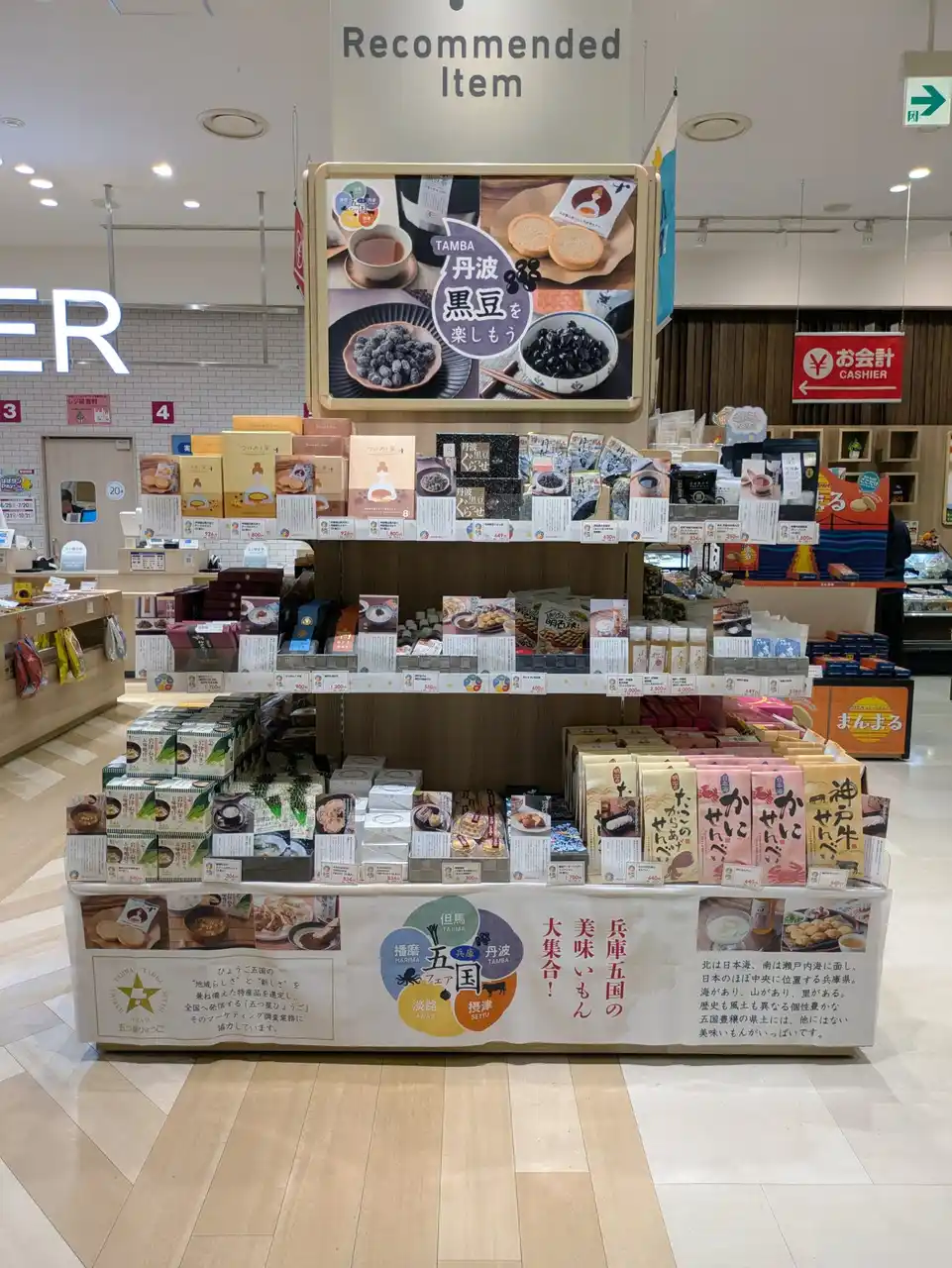 淡路島の玄関口に位置し、明石海峡大橋を眺めながら旬の食材を味わえるレストランや、特産品のショッピングを楽しめる淡路ハイウェイオアシス(運営:ユーアールエー株式会社/所在地:兵庫県淡路市岩屋)の、オアシス館1Fお土産物ショップ「淡路物産館」では、2025年11月29日(土)まで、期間限定にて“五つ星ひょうご”特設コーナーを設置し、普段取扱っていない五国の県産品を販売します。この機会に、兵庫五国の逸品をお買い求めいただきたく存じます。 |