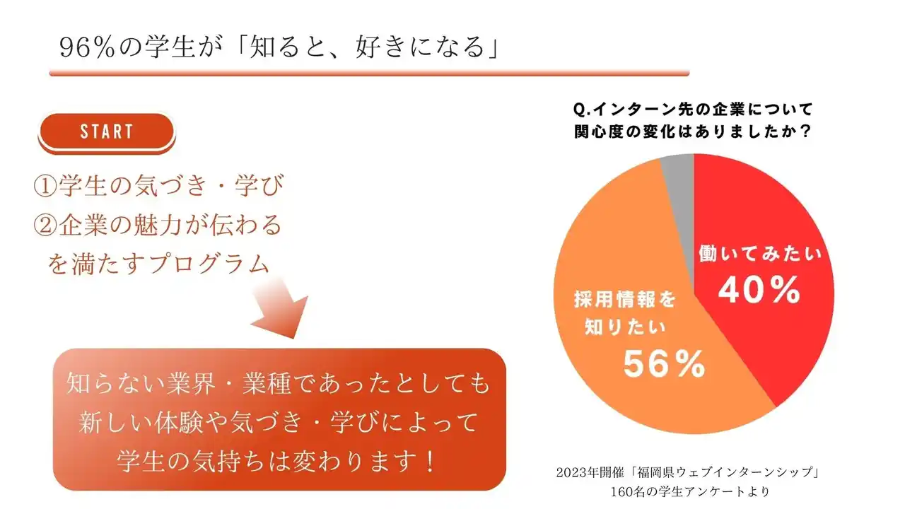 当協議会が過去に開催したインターンシッププログラムでも、学生は知らない企業であっても、関わりを持つことで働くことへの関心の変化が起きていました。 |