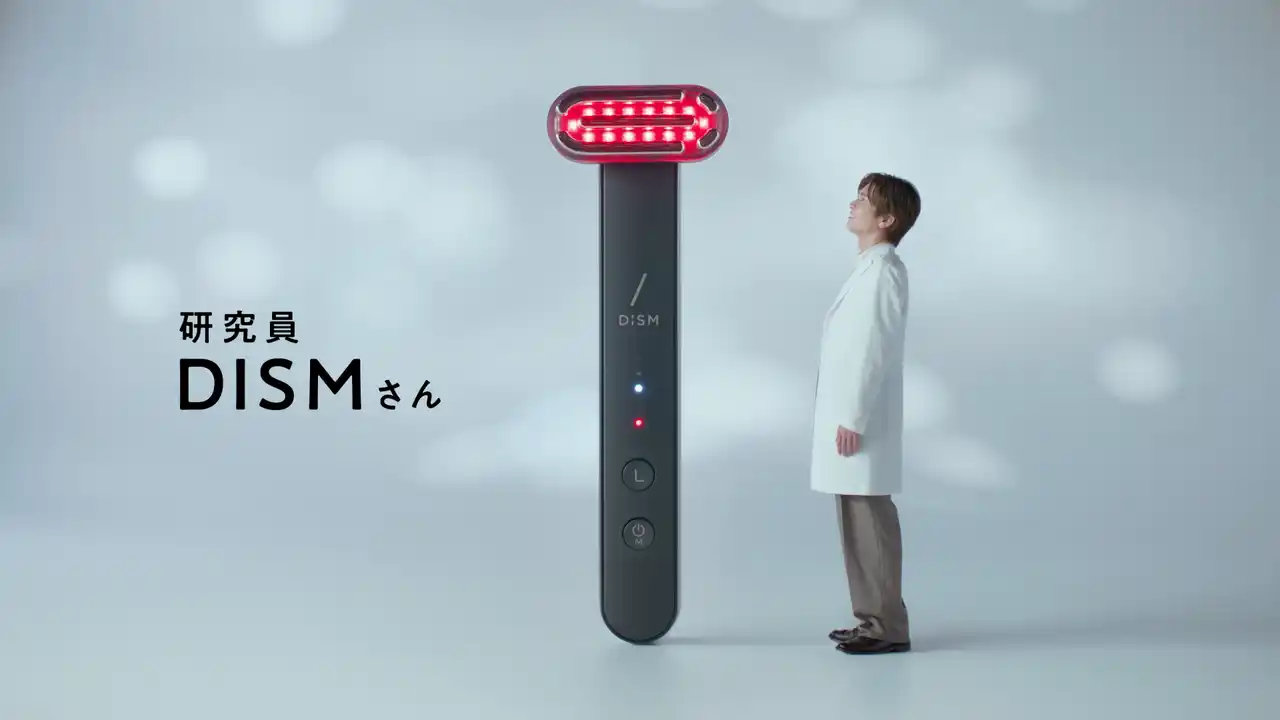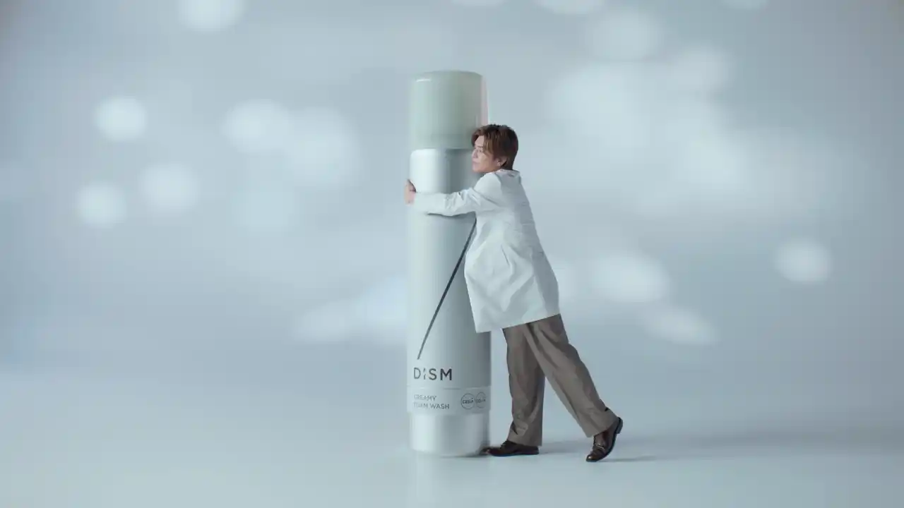 「ディズム 美顔器 研究篇」 では、巨大な美顔器を惚れ惚れと見上げながら「ワオ」とつぶやき、「お~、コンパクト…なのにパワフル!?」と、自分のアイデアに改めて驚いた様子。大きく手を振りながら嬉しそうに美顔器のまわりで一生懸命にアピールする姿から、美顔器の出来栄えに対する興奮も伝わります。「ディズム 白泡洗顔 飛び出る篇」 では、洗顔ボトルからひょっこり顔を出したDISMさんが「成功しちゃった」とお茶目に小声で一言。たっぷりな泡で満足げに洗顔したり、抱き着いたりと、可愛らしい様子が描かれます。 |
