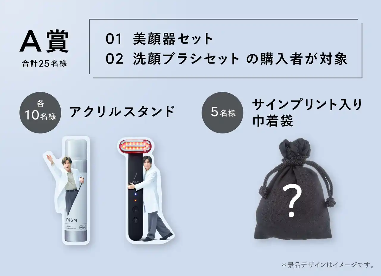 A賞 計25名:1.美顔器セット/2.洗顔ブラシセットの購入者様がご対象 |