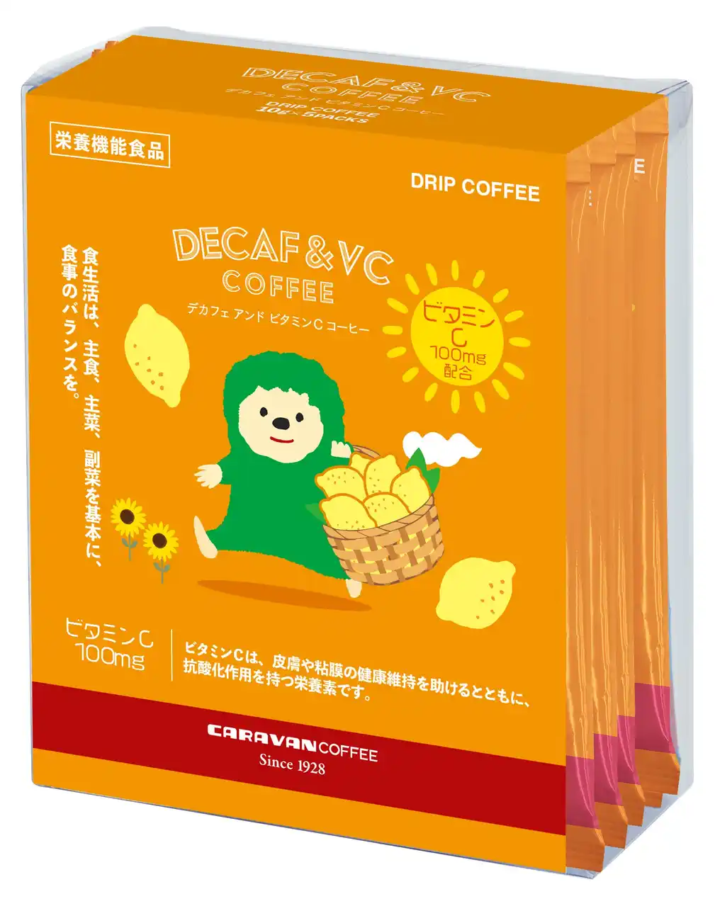 | この度、キャラバンコーヒー(運営元:株式会社ユニマットライフ/本社:東京都港区/代表取締役社長 落合昭)は、11月11日(火)より、自社カフェインレスコーヒーに「ビタミンC」を100mg配合した栄養機能食品『DECAF&VC COFFEEドリパック(R)︎』を発売いたします。 | ||||||||||||||