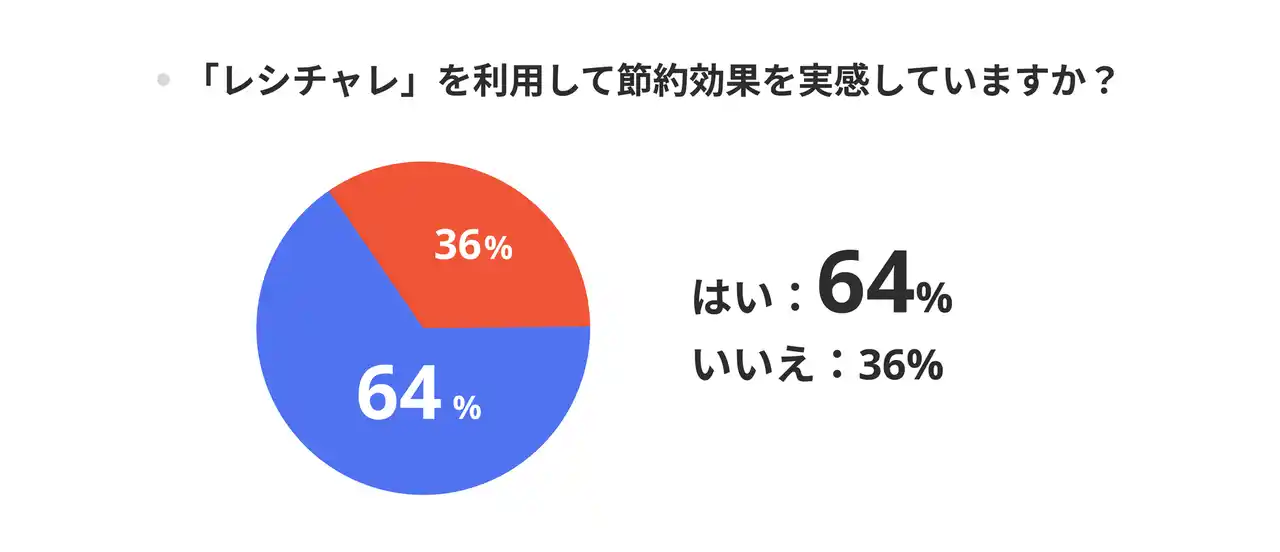 さらに、「レシチャレ」利用者の64%が「節約効果を実感している」と回答。物価高騰が続く昨今の状況において、本サービスが生活者の節約ニーズに対応する有効な手段であり、家計支援に貢献するサービスであることを裏付けました。 |