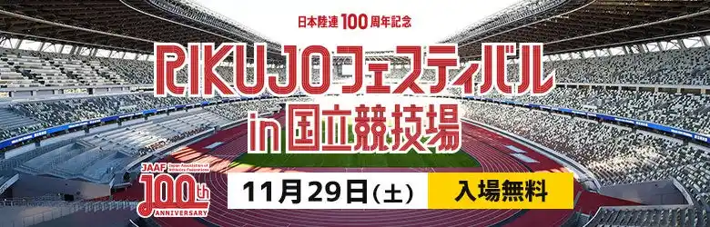| この度、11月29日(土)に100年支えていただいたみなさまへの感謝を込めて「~日本陸連100周年記念~RIKUJOフェスティバル in 国立競技場」を開催いたします。 | |||