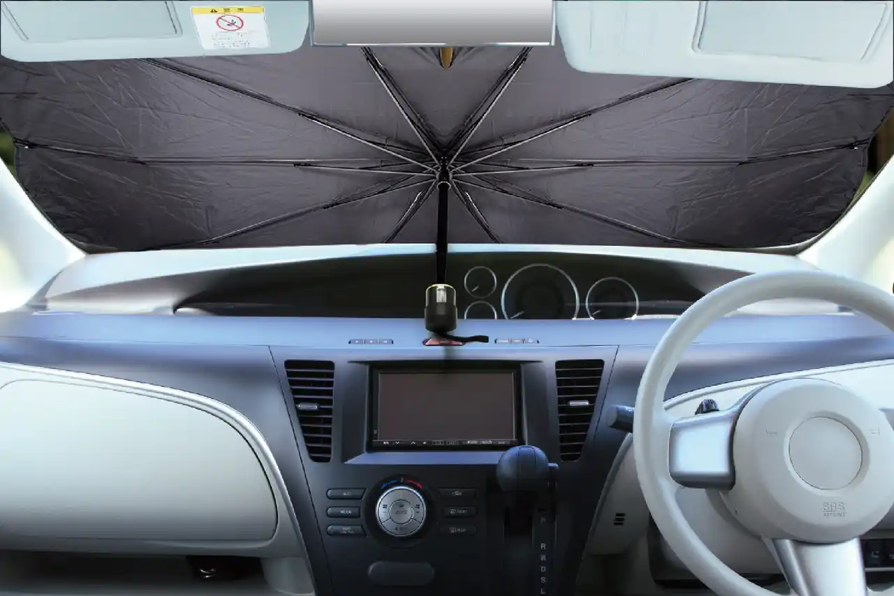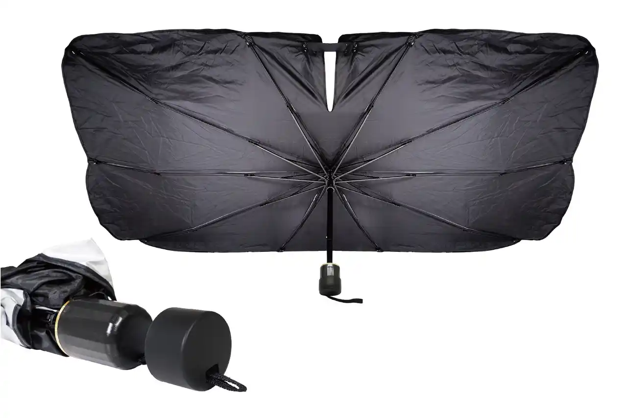 | 特徴:傷防止シリコンキャップ付きの傘型サンシェード登場!シリコンキャップで車内を傷つける心配がありません。傘のように「パッ」と開いて熱や紫外線99.5%以上カット!普通車・ミニバン/軽自動車タイプのフロントガラスのサイズをカバーできます。PUレザー仕様の専用収納袋付きで収納もコンパクトに。車内温度の上昇防止や仮眠時の目隠しにおススメです。丈夫な10本傘骨なので耐久性もバッチリ! | |||||||||