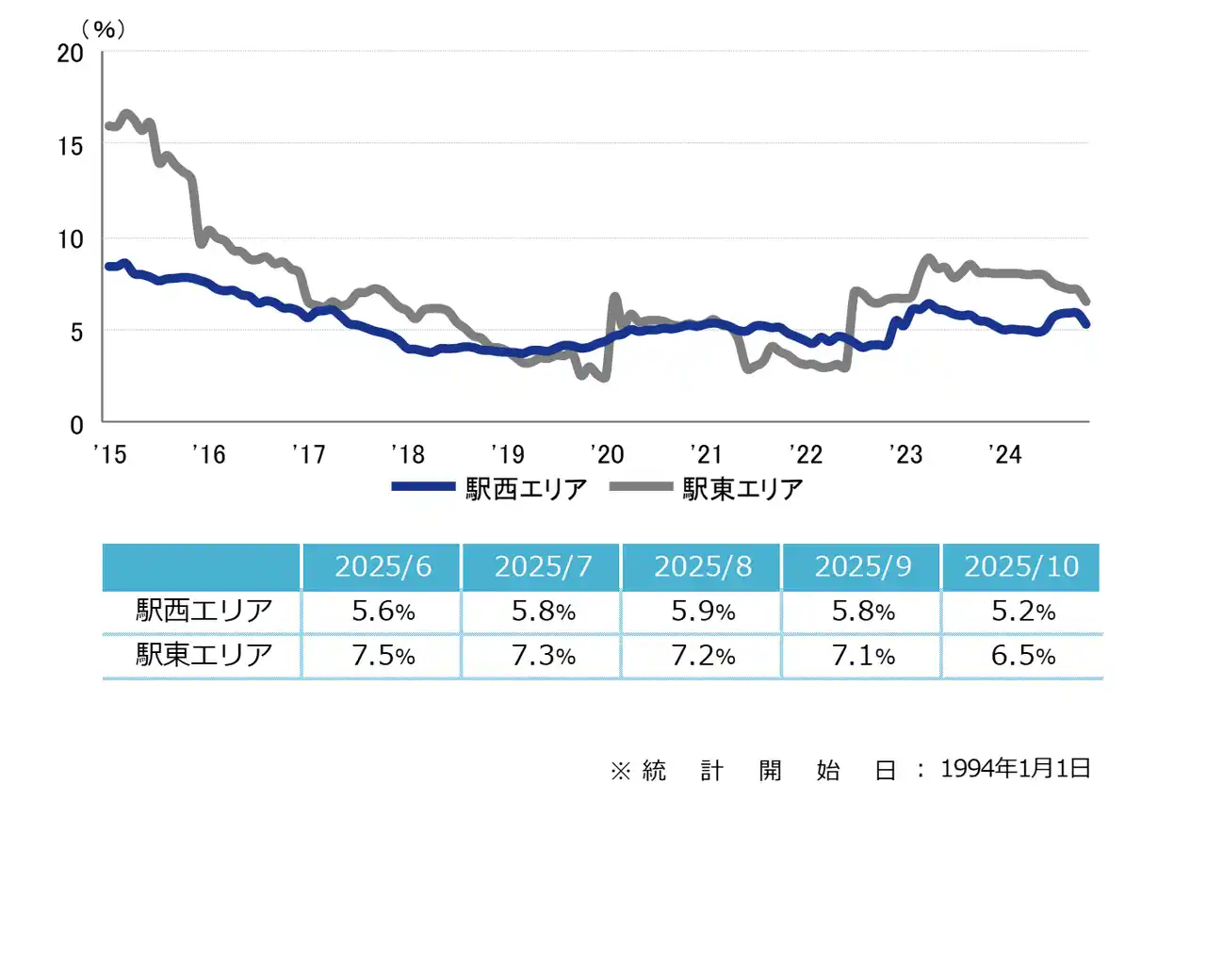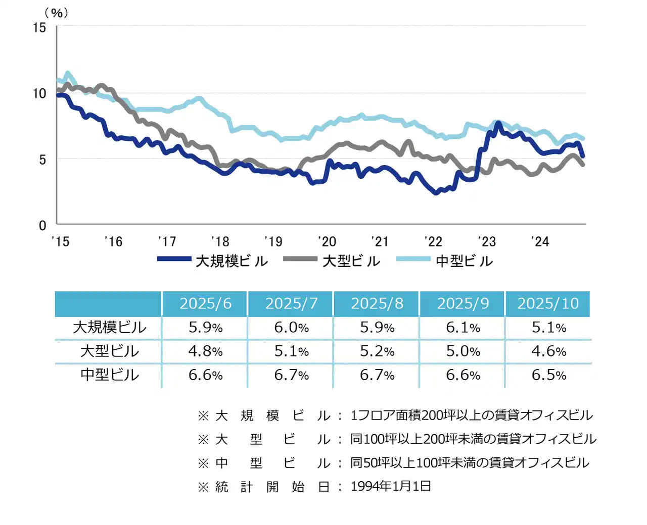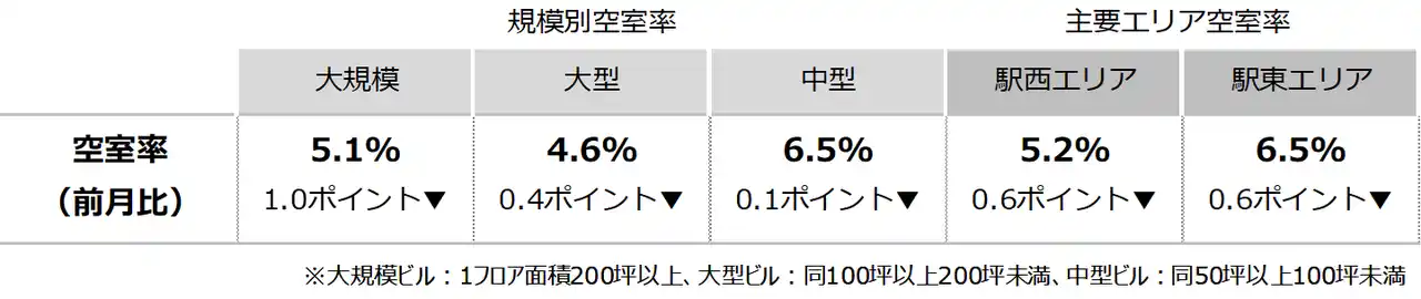 空室率 前月から大幅な低下 「大規模」は1.0ポイントの低下 |