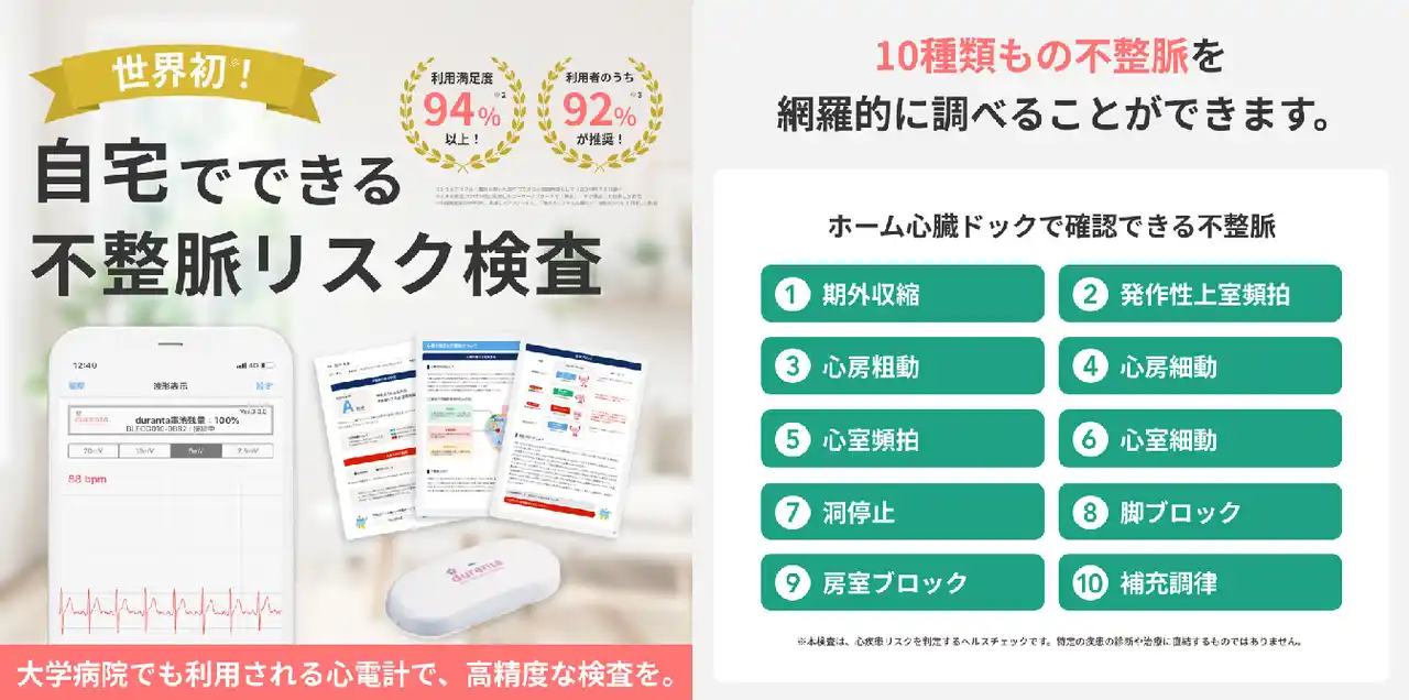 本プロジェクトでは、当社が開発した 世界初の在宅型長時間心電図検査サービス「ホーム心臓ドックpro」 を活用し、県民の健康寿命延伸、心疾患予防、そして地域医療機関とのシームレスな連携を目指します。 |