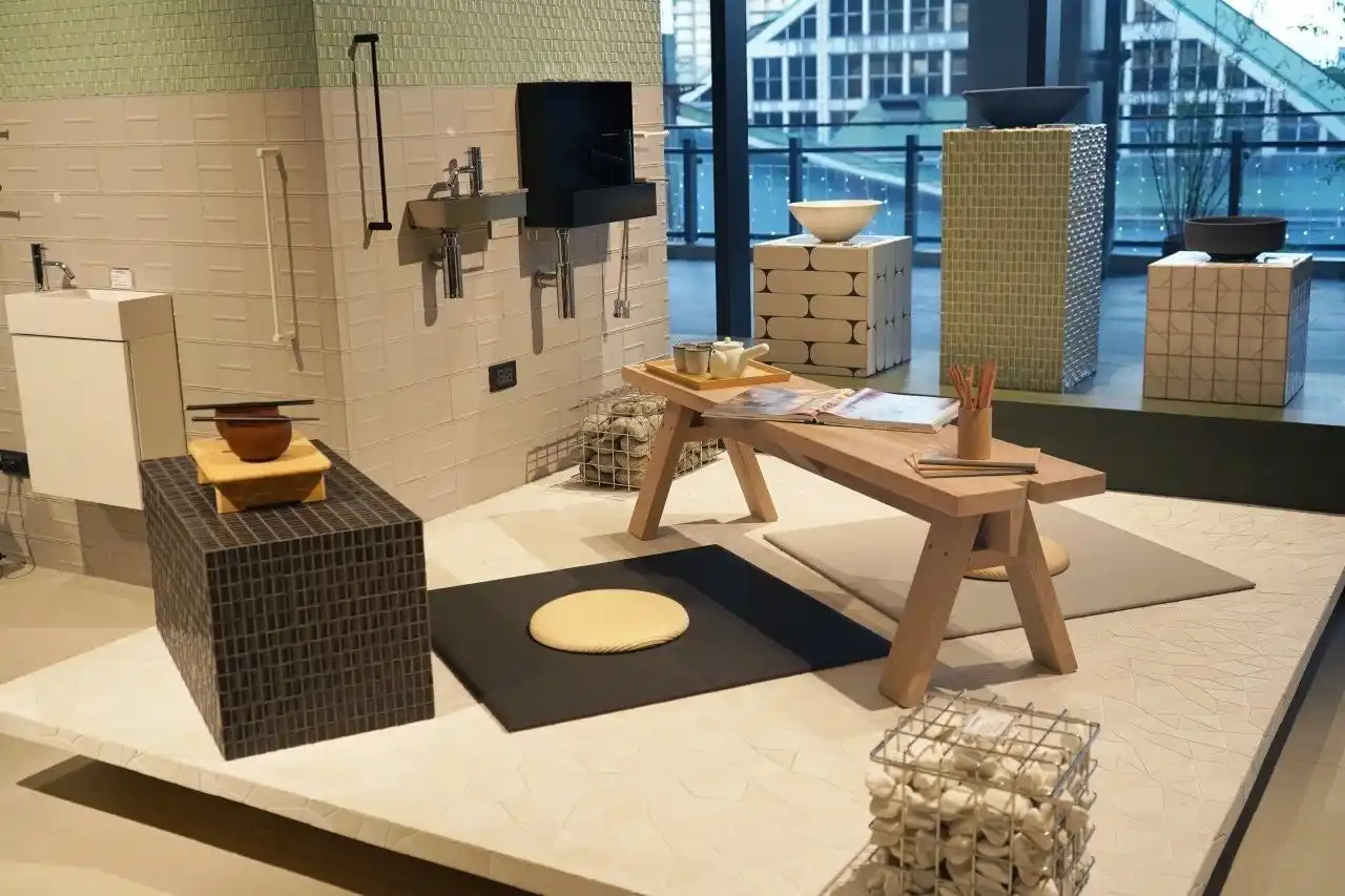 今回のショールーム開設に合わせ、「叶える(Kanaeru)- From Dreams to Reality」をテーマに、日本の自然美と現代のくらしを融合した、体験型ポップアップスペースを展開しました。和を感じさせるオブジェを配置し、商品の背景には日本の風景をLEDで投影。当社の主力製品であるキッチン・バスタブ・洗面台などを展示しました。各商品を単なる住宅設備ではなく、”自分らしさを取り戻すための空間”として表現。”夢のような空間”をイメージしたポップアップスペースからショールームへと誘導することで、来場者が「想い描いた理想のくらしが現実になる」ことを体感できる演出にこだわりました。 |