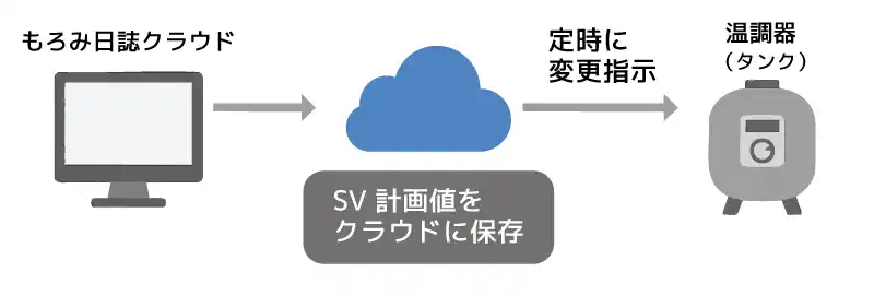 温調器の設定温度(SV値)を事前に登録し、クラウドが計画通りに実行。仕込み工程の温度管理の手間を大幅に削減します。 |