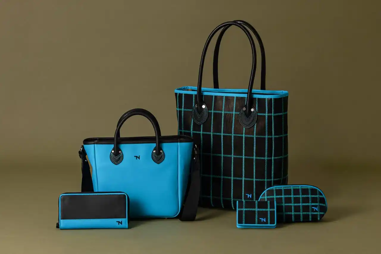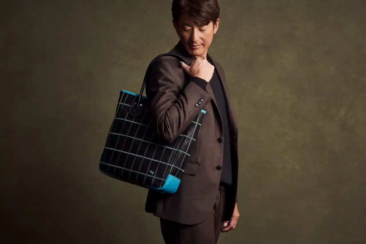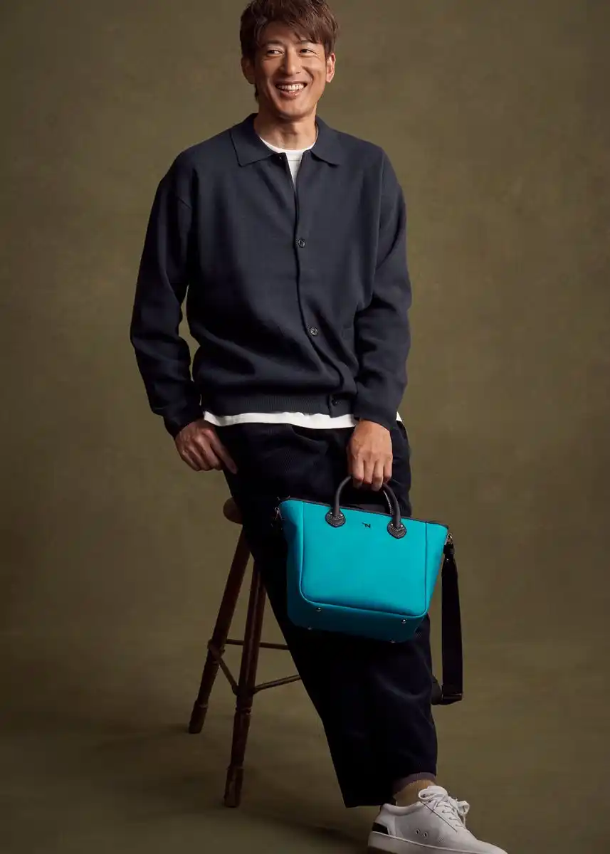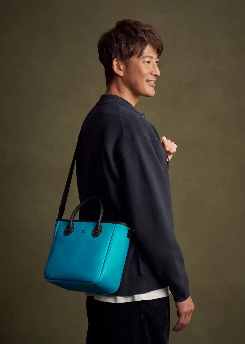 能見さんの手に長年なじんだ野球グローブの色をモチーフに、TRIONの人気「パネルトート」に新たな表情を纏わせました。大胆でありながら繊細なブルーのアクセントが、ブラックのボディに知的な躍動感を与えています。 |