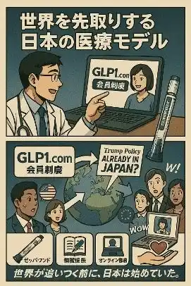 2025年11月6日、米国トランプ政権が発表した肥満治療薬に関する画期的な政策が、世界の医療業界に衝撃を与えている。メディケア適用外だった「ゼップバウンド」(イーライリリー社)と「ウゴービ」(ノボノルディスク社)が、継続治療を前提に月額245ドル(約37,000円)で提供されることになった。この「継続治療者への優遇措置」という革新的アプローチは、実は日本のMyMedipro株式会社が運営する「GLP1.com会員制度」で既に実現されていたモデルだ。 |