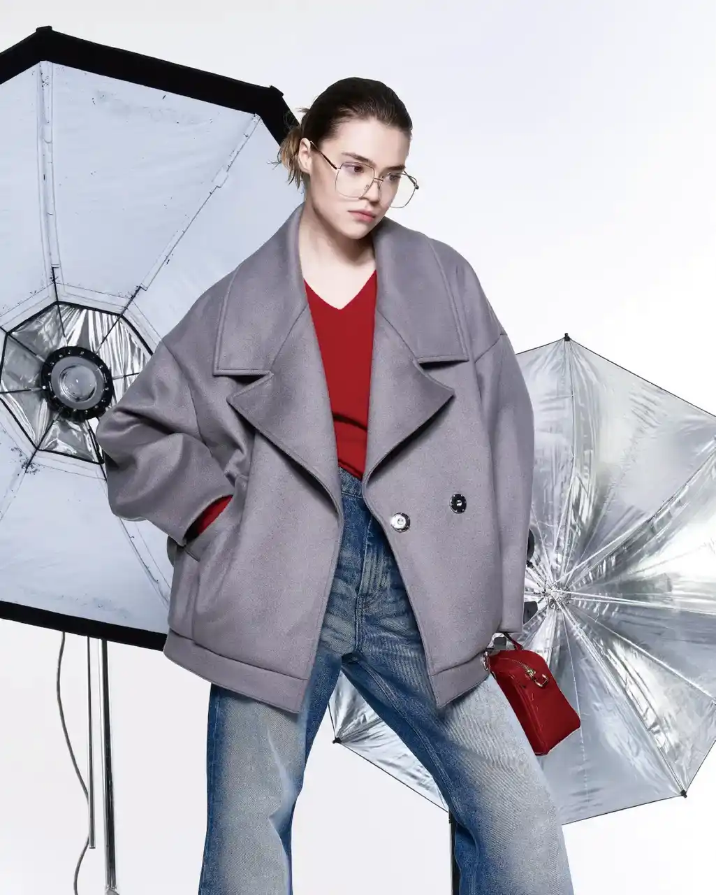 一方、ショートブルゾンは印象的なビッグカラーとコクーンシルエットが特徴。裾に入れたタックが柔らかな丸みを生み、構築的でありながら女性らしいフォルムを演出します。パンツにもスカートにも合わせやすく、冬の装いを軽やかにアップデートしてくれます。 |
