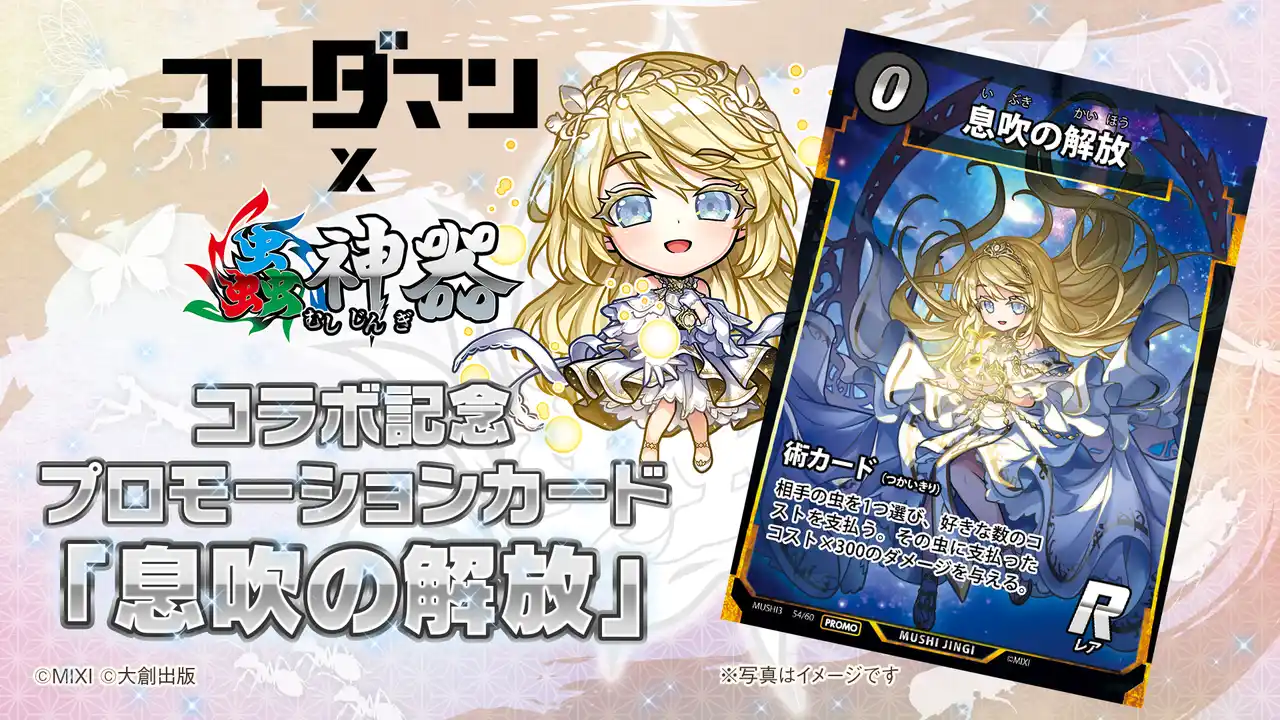 株式会社MIXI(東京都渋谷区、代表取締役社長 上級執行役員 CEO:木村 弘毅)は、スマホアプリの「ことば」で闘う新感覚RPG共闘ことばRPG コトダマン」(以下コトダマン)において、DAISOのオリジナルトレーディングカードゲーム『蟲神器』との初コラボを、本年11月11日(火)より開催します。 |