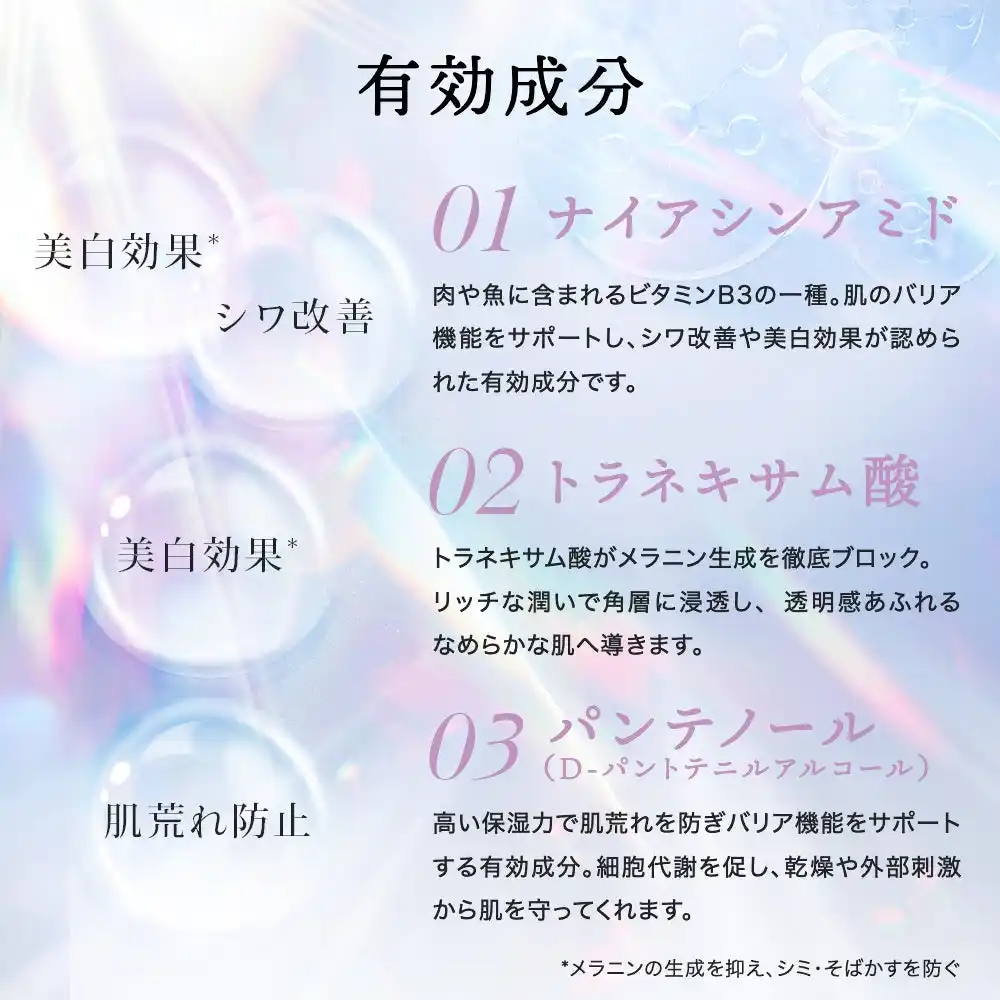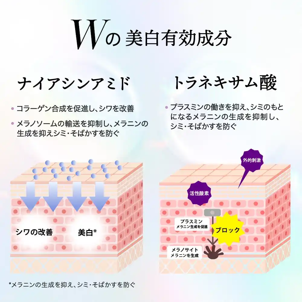 トラネキサム酸×ナイアシンアミドの美白有効成分を配合! |