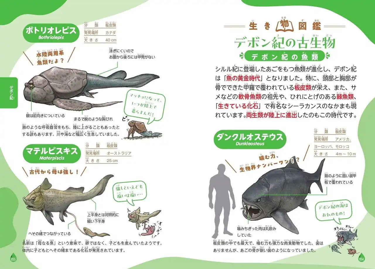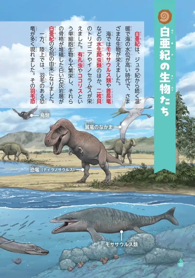 それぞれの大絶滅に巻き込まれ現在では存在しない生物たちを、 川崎悟司さんによるオールカラーの美しいイラストとポップなキャラクターで紹介するとともに、 各時代の環境や絶滅の原因、生き延びた生物たちの発展について、豊富な説明文で楽しく解説していきます。 監修は、古生物学の権威、東北大学名誉教授の海保邦夫教授。 子どもから大人まで楽しめるよう、すべての漢字に「ふりがな」つき! |