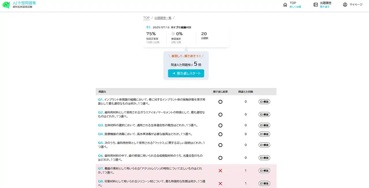 株式会社MLP(本社:東京都中央区、代表取締役:大森喜良)は、2025年10月8日、歯科医師国家試験対策の新サービス「デンタルAIゴール」にて、生成AIを活用した歯科国家試験の予想問題集をリリースいたしました。AIが過去問や最新の出題傾向を詳細に分析し、受験生の悩みを克服するための問題を提供します。 |
