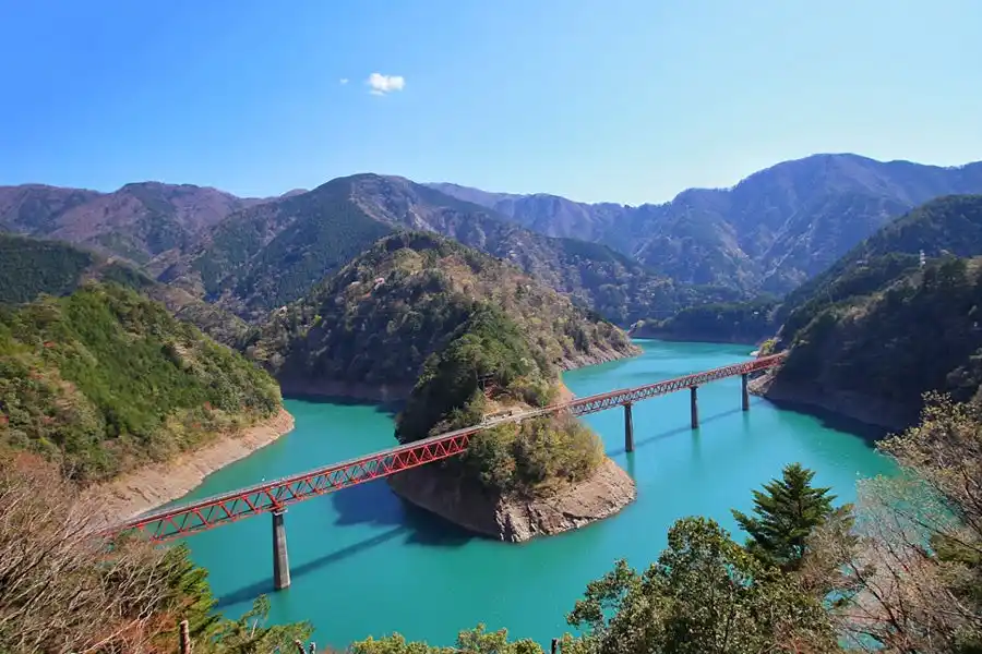 大井川鐵道 井川線(南アルプスあぷとライン)に乗車し、秘境駅の旅へ。 旅のハイライトは、河床からの高さが日本一の鉄道橋「関の沢橋梁」(長さ114m、高さ70.8m)を渡る瞬間です。眼下に広がる渓谷美を見下ろす体験は、まるで空中にいるかのような浮遊感と感動を与え、新年の運気も高まることでしょう。左右の窓に広がる雄大な渓谷美をお楽しみください。 |