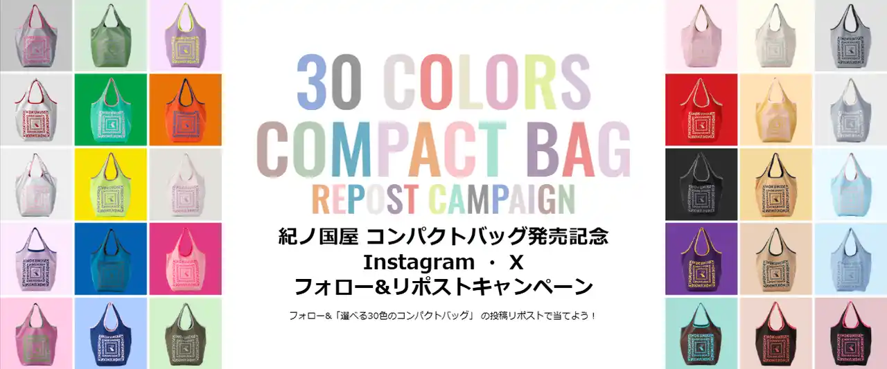 【第2弾】30色の「コンパクトバッグ」発売記念フォロー&リポストキャンペーン実施! |