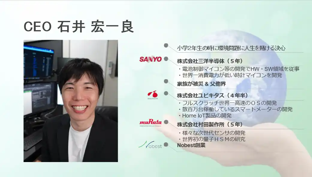 株式会社Nobestは、2022年4月22日(地球の日)に設立した環境系ITスタートアップ企業です。「技術を使って人も自然も救う」というミッションを掲げ、AI、量子計算、IoT技術を活用したゼロエミの完全体である「電気を買わない家」の実現を目指しております。 |