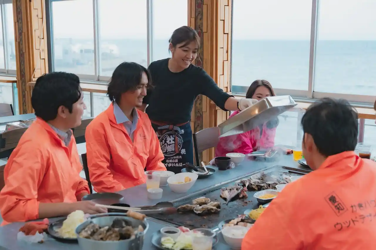 今回初めて明らかになるのは、食と体験を融合させた新しいコンテンツ。 自分の手で鉄板を操りながら焼き上げる「ぺったんこ焼き体験」では、牡蠣のほか、ホタテやイカなど好きな海鮮を選んで調理が可能。 鉄板の上で立ちのぼる香ばしい香りと音、焼きたての湯気まで楽しめる臨場感が魅力です。 小さなお子さまもスタッフのサポート付きで安心して参加でき、家族みんなで“焼く楽しさ”を共有できる人気プログラムです。 |