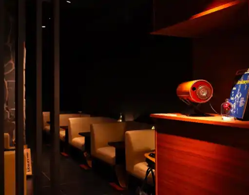 さらにその奥には有料でエムズシステムの波動スピーカーをゆっくりと堪能できるパーラールームを設置。ターンテーブルに載せたアナログレコードの音や、顧客自身のスマートフォンからブルートゥースで好きな楽曲を簡単に楽しめるシステムを導入しました。
