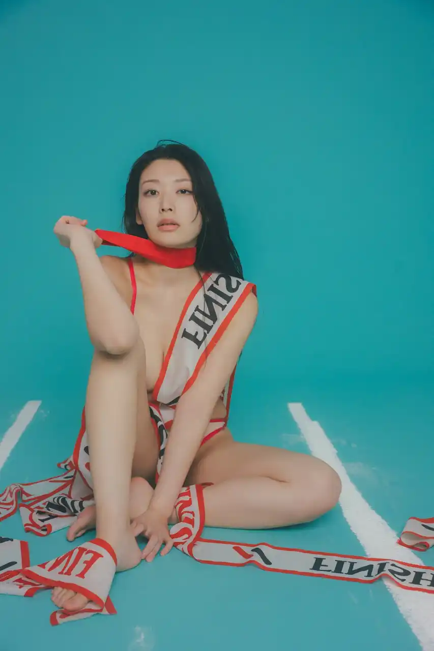 | 撮影では、シュールな”ひとり運動会”を開催! 4着の衣装を着て、赤組や白組に加え、審判や応援団にも扮してもらった。玉入れや綱引き、障害物競走など運動会の定番種目を次々とこなし、その度にスライムのように形を変えるバストは大注目。ダイナマイトボディーゆえに成立した、勢い感じるグラビアとなっている。 | |||||||||