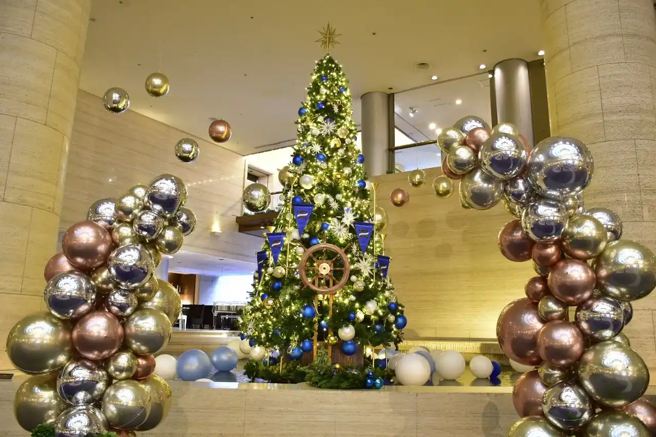 ホテル全体を豪華客船に見立て、天井高17mのメインロビーに高さ約5mのクリスマスツリーを設置します。館内各所、ホテルにご来館いただいたお客さまへホリデーシーズンを感じられる、美しく幻想的な世界へと導きます。 |