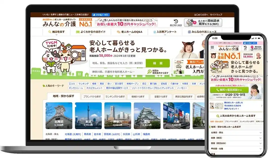 介護情報の総合ポータルサイト「みんなの介護」:https://www.minnanokaigo.com 介護の人材採用メディア「みんジョブ」:https://job.minnanokaigo.com 連載コンテンツ「みんなの介護ニュース」:https://www.minnanokaigo.com/news 介護福祉⼠・ケアマネ試験対策ツール「ケアスタディ」:https://job.minnanokaigo.com/carestudy 介護スタッフ広場「みんなの介護コミュニティ」:https://community.minnanokaigo.com 入居後の支援「みんなの介護不動産サポート」:https://market.minnanokaigo.com/lp/realestate