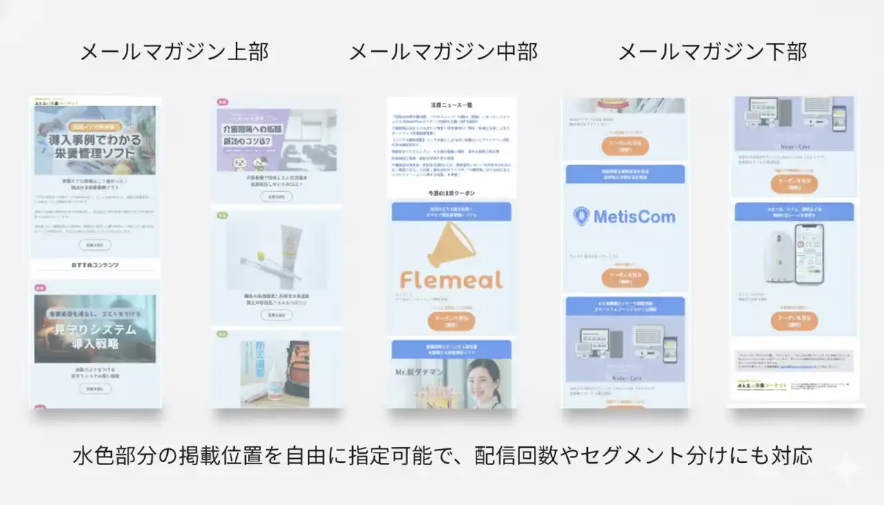 掲載位置を自由に指定可能(メール上部・中段・下部など希望位置を設定) |