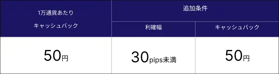 さらに、決済の利確幅が指定の範囲の決済取引には、追加で50円をキャッシュバックいたします。 |