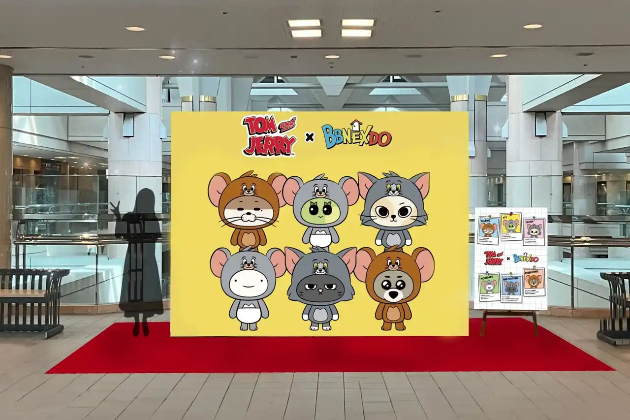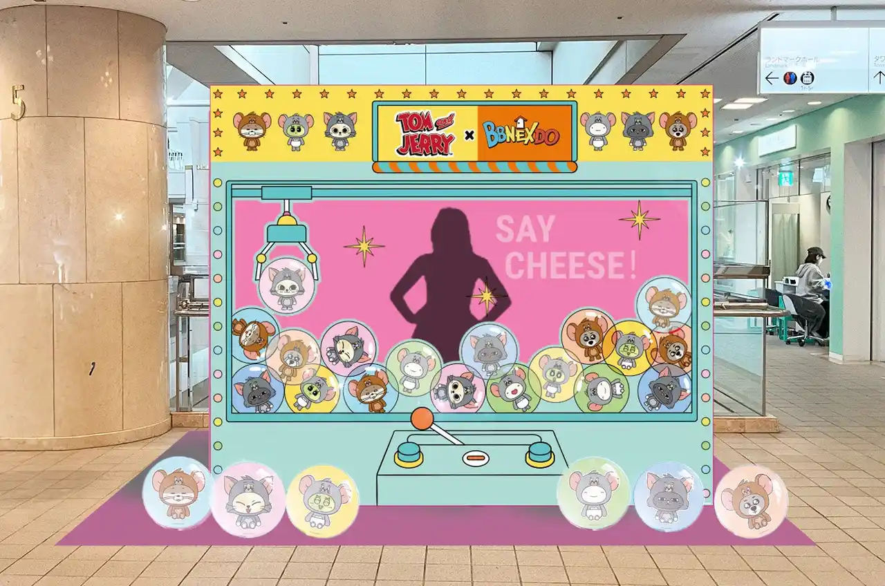 ランドマークプラザでは、「トムとジェリー」の85周年アニバーサリーソング「SAY CHEESE!」をリリースするなど、いま人気急上昇中のBOYNEXTDOORの公式キャラクター「BBNEXDO」とのコラボアイテムの展示やクレーンゲームをモチーフにしたフォトスポットなど、トムとジェリーとBOYNEXTDOORの魅力あふれる展示コーナーです。 |