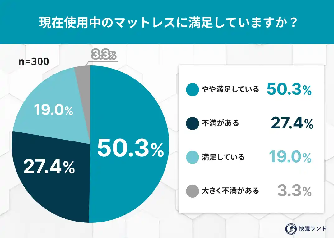 現在のマットレスに「やや満足している」が約半数も、約3割が「不満あり」 |