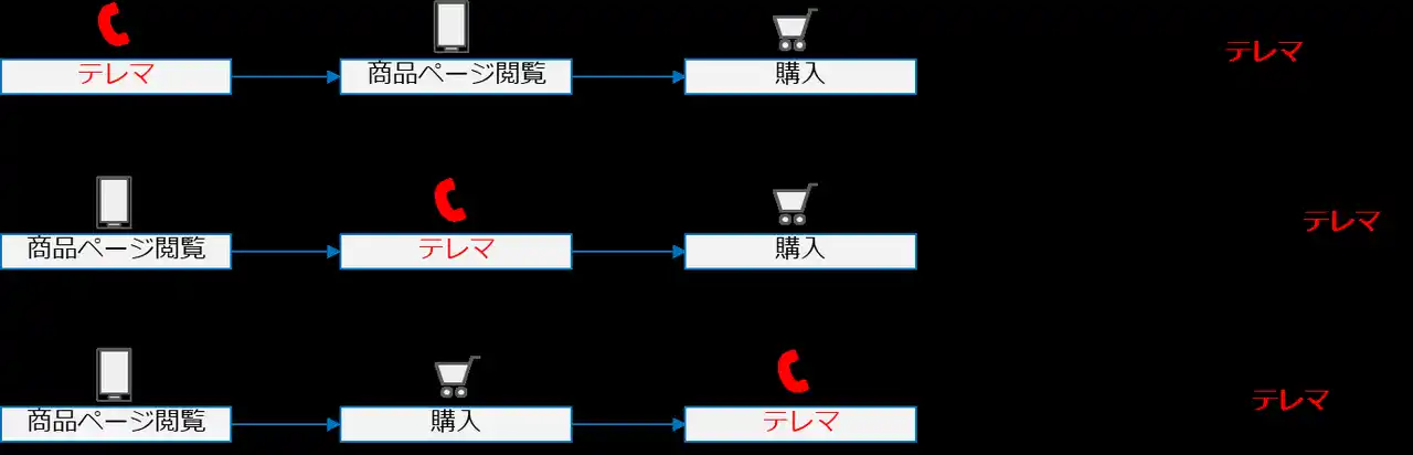 LAMは行動の順序に応じた意味の違いを理解します。例えば、テレマーケティング(テレマ)、商品 ページ閲覧、購入の3つの行動について考えてみます(図5)。お客さまにテレマをした後、商品ページを閲覧し、購入した場合、テレマが商品の認知を促進したと考えられます。次に、商品の閲覧後、テレマをして、購入に至った場合では、テレマが商品への関心を深めたと考えられます。また、購入後のテレマの場合は、不具合のサポートが考えられます。このように、前後関係が違えば、各行動の意味が変わります。LAMは、このような行動の持つ意味を見分けてお客さま理解を深め、お客さまの「どうしたい」を正確に予測します。 |