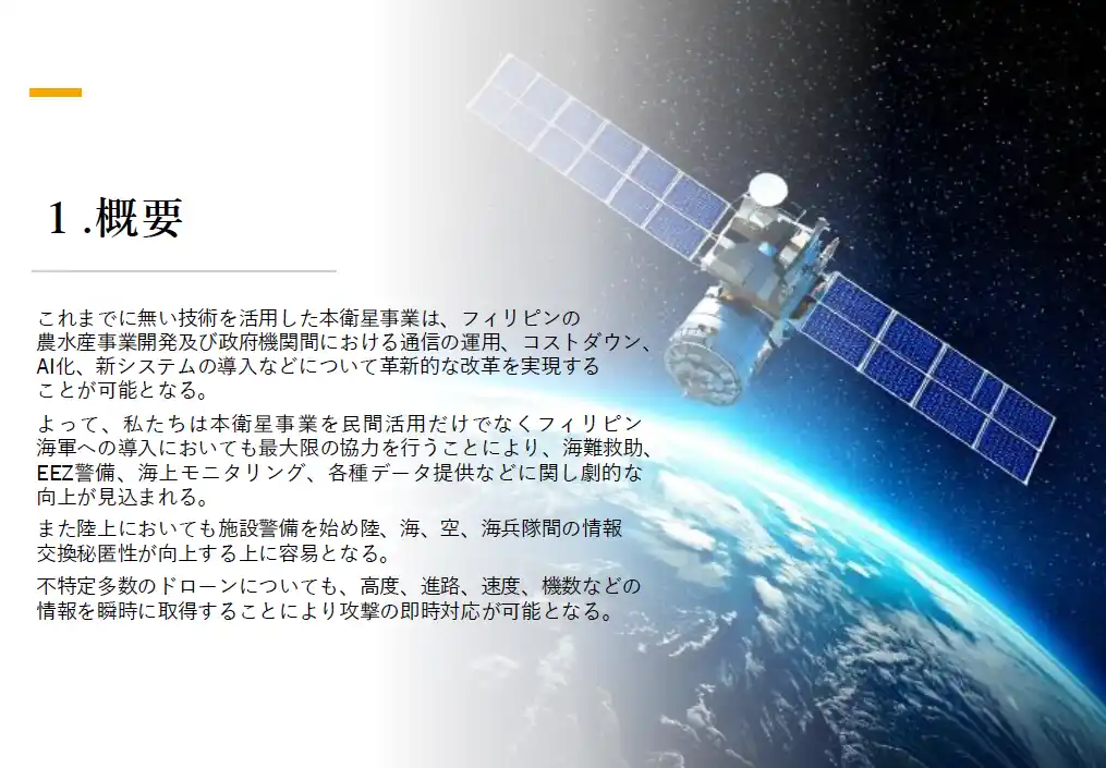 In agriculture, starting with at least 200 hectares, there are many challenges besides crop production technology, including production management, logistics, and power supply. Both parties concluded that there is no future for Philippine agriculture unless these issues are addressed simultaneously, and agreed to proceed with agricultural development utilizing satellite technology. |