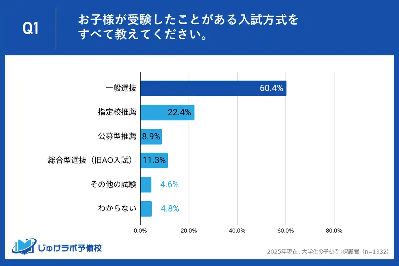 依然として主流は「一般選抜」!大学生の保護者の6割が経験と回答するも、その牙城は揺らぎ始めている? |