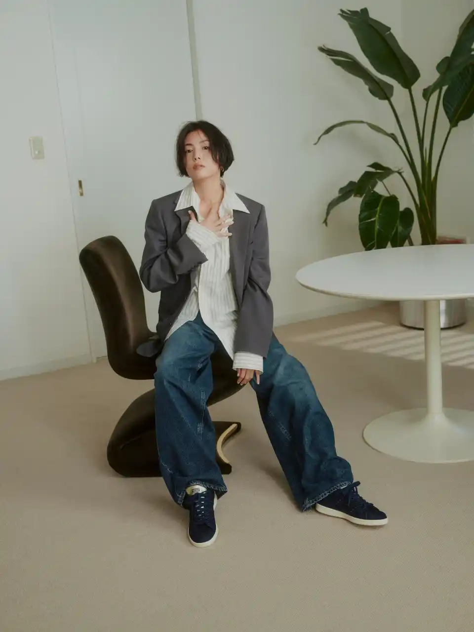今回のビジュアルでは、程よい抜け感を保ちながら、ラフにおしゃれを楽しむ大人な印象を、新作のSTAN SMITHと共に表現しています。 |