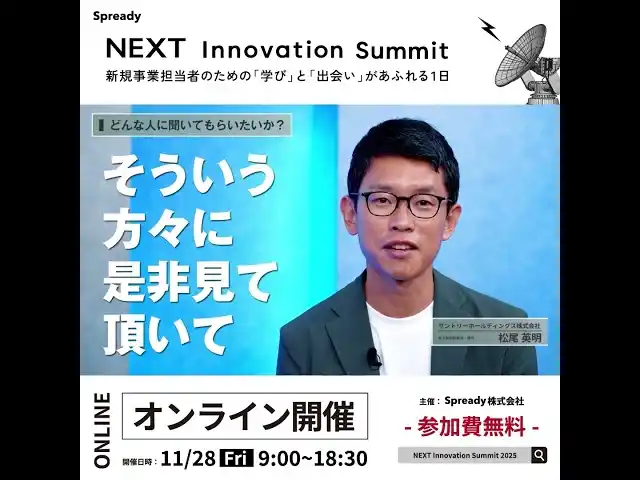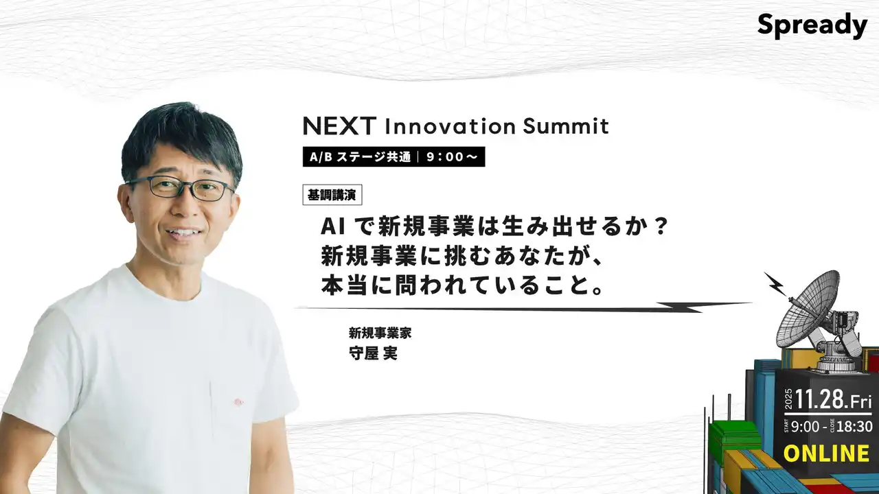 新規事業支援サービスを提供するSpready株式会社(本社:東京都渋谷区、代表取締役社長:佐古雅亮、以下「当社」)は、2025年11月28日(金)に新規事業の取り組みや知見を発信するカンファレンス「NEXT Innovation Summit 2025 in Summer 新規事業担当者のための『学び』と『出会い』があふれる1日(以下「本イベント」)」の申し込み者数が2,000名を突破したことをお知らせします。