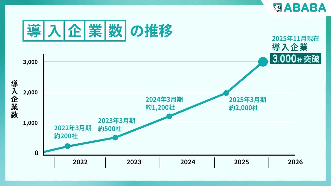 このたび、サービス提供開始から5年の節目を迎えるとともに、採用活動に『ABABA』を導入してくださった企業様の数が3,000社を突破しました。 |